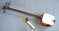 and silk strings. The plectrum (“bachi”) is traditionally made from ivory. |